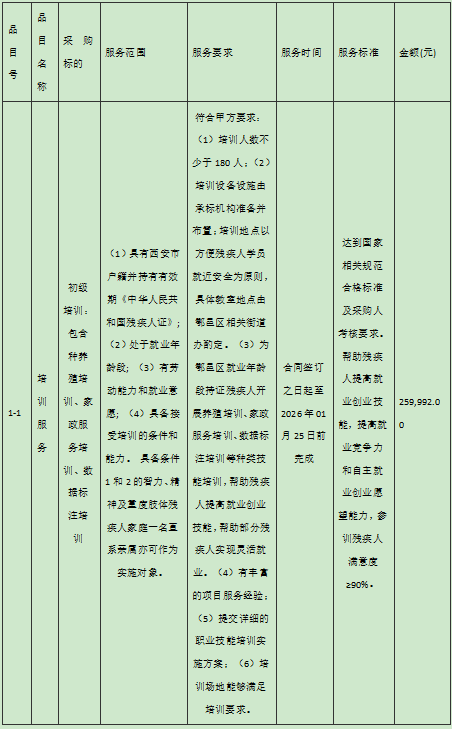 合同包1(2025年度残疾人职业技能和实用技术培训项目(第二批)初级培训):